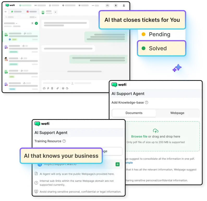 Manage high lead volume easily on WhatsApp; use Wati AI to qualify leads and hand off the best-fit ones to your reps automatically
